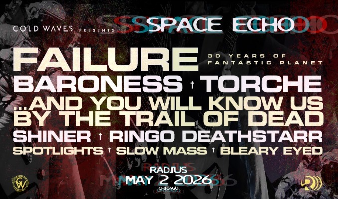 To celebrate that relationship, Cold Waves Presents has built an evening of music featuring a plethora of forward-thinking acts who's history and sound tie to Failure and the city. BARONESS, And You Will Know Us By The TRAIL OF DEAD, TORCHE and SHINER have all shared enduring bonds with Chicago, while SLOW MASS calls the city home. Rounding out the bill is SPOTLIGHTS (Ipecac Recordings artists and a recent fave of Deftones Chino Moreno) and Austin’s RINGO DEATHSTARR, plus BLEARY EYED from Philadelphia.